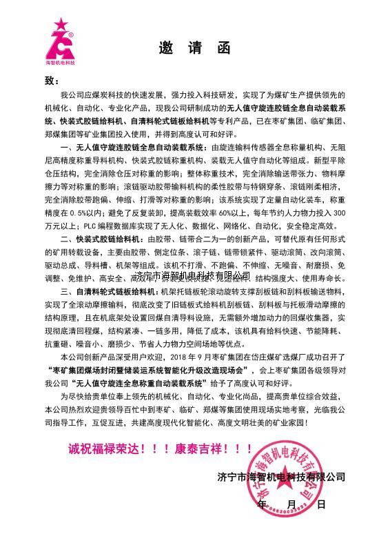 本產品一經推出即獲得各大設計院及用戶的一致好評,率先在棗礦集團岱莊煤礦取得成功應用,2018年9月受邀參加了《棗礦集團煤場封閉暨儲裝運系統智能化升級改造現場會》,智能裝車系統得到了充分肯定!我司憑借雄厚的加工制造實力及過硬的創新技術能力,勢必為運輸稱重系統、快速計量裝車系統帶來又一次的技術創新變革。
