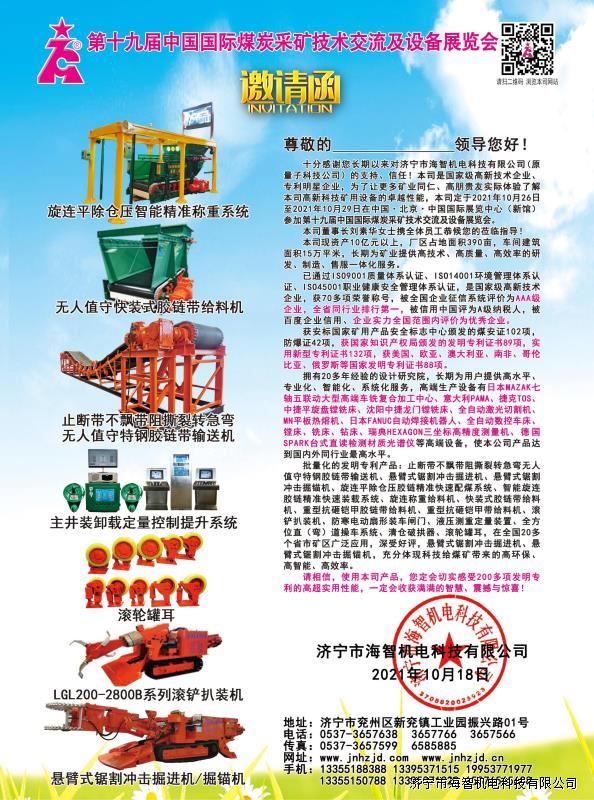 邀請函-第十九屆中國國際煤炭采礦技術交流及設備展覽會